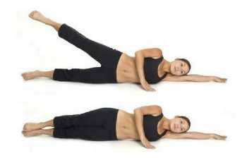 Recostada sobre tu lado, estira las piernas y apoya el peso de tu torax en el codo; luego levanta suavemente la pierna superior en forma vertical hasta que tu talón elevado forme con tu rodilla estirada una línea vertical. Repite esta rutina en dos grupos de 10 elevaciones por cada lado.